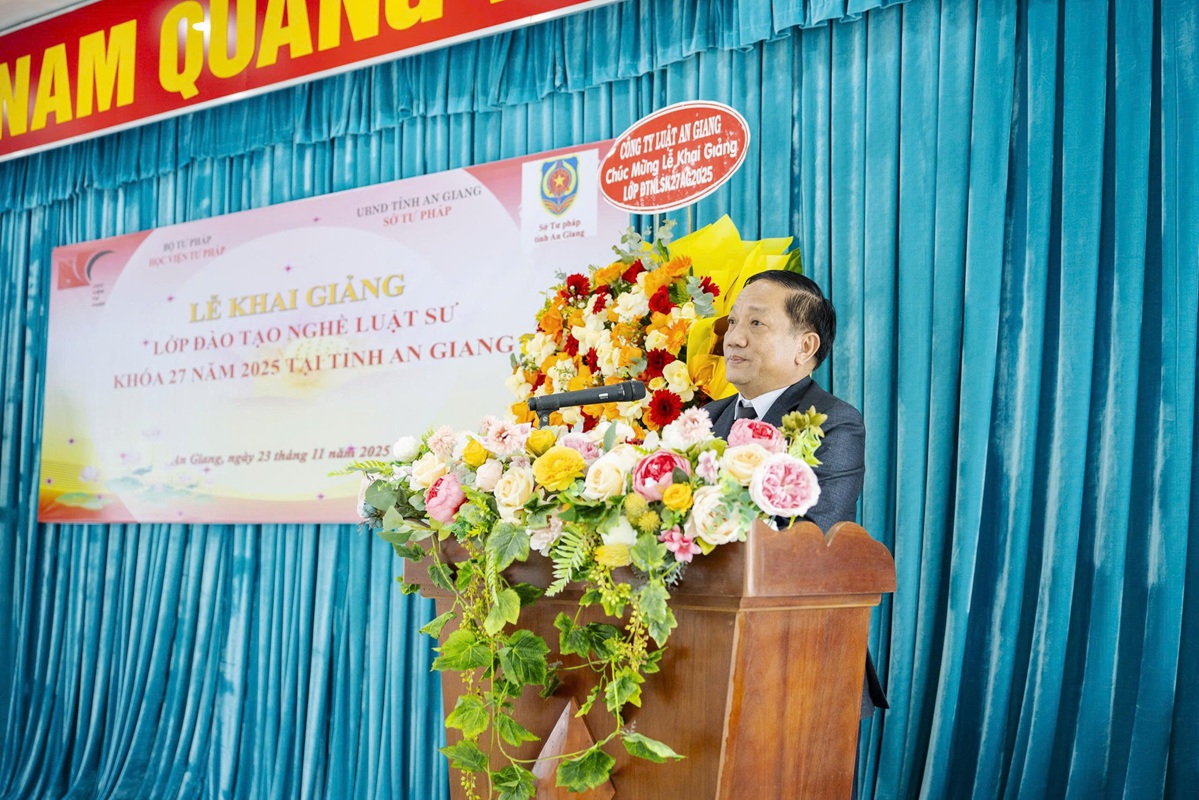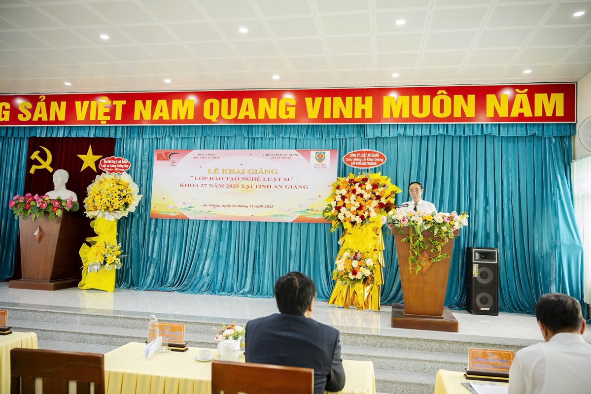 Sáng 23/11/2025, tại Trung tâm Giáo dục thường xuyên tỉnh An Giang 2, địa chỉ phường Long Xuyên, Học viện Tư pháp (Bộ Tư pháp) phối hợp Sở Tư pháp tỉnh An Giang tổ chức Lễ khai giảng lớp đào tạo nghề luật sư khóa 27.